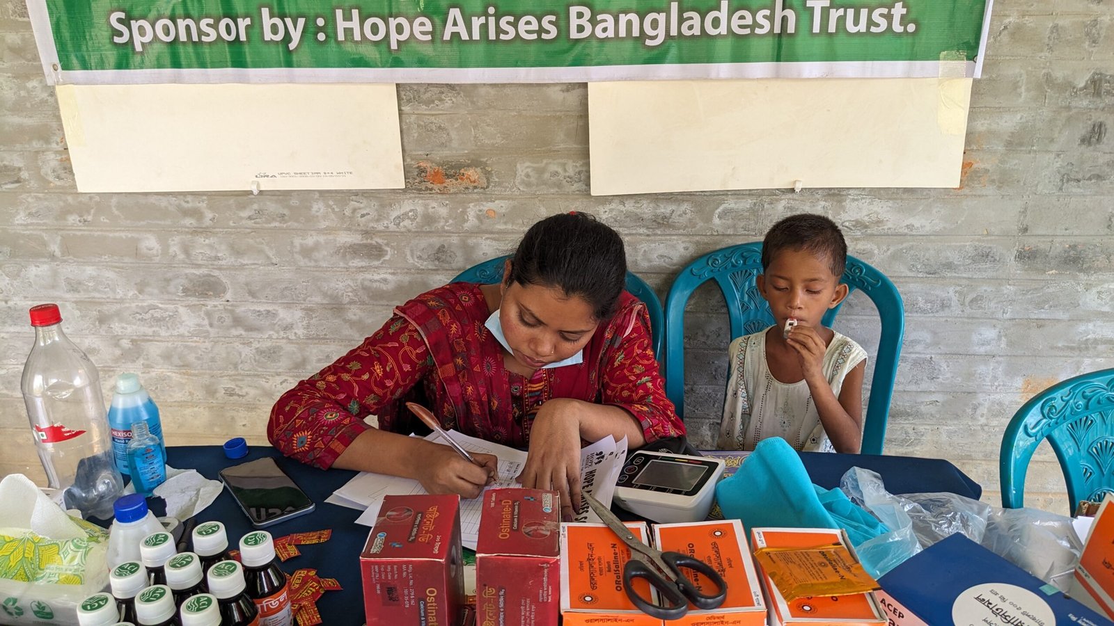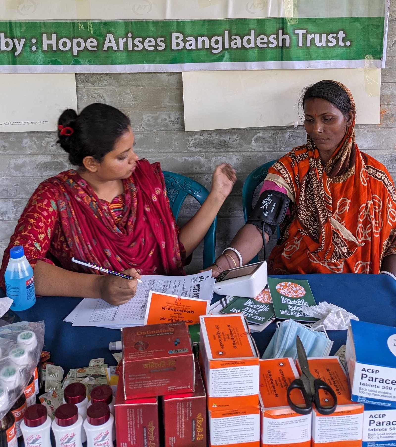 Public healthcare in rural Bangladesh is severely hampered by a critical shortage of trained doctors, inadequate facilities, and high out-of-pocket costs, compelling many villagers to rely on unqualified informal providers. This combination of limited access and poor quality leads to delayed or forgone treatment and poorer health outcomes for the majority of the population.Hope Arises Schools organize twice a year Community Health Care days for the students, their siblings and their mother. Trained medical doctors examine the students, provides health education and over the counter medication.